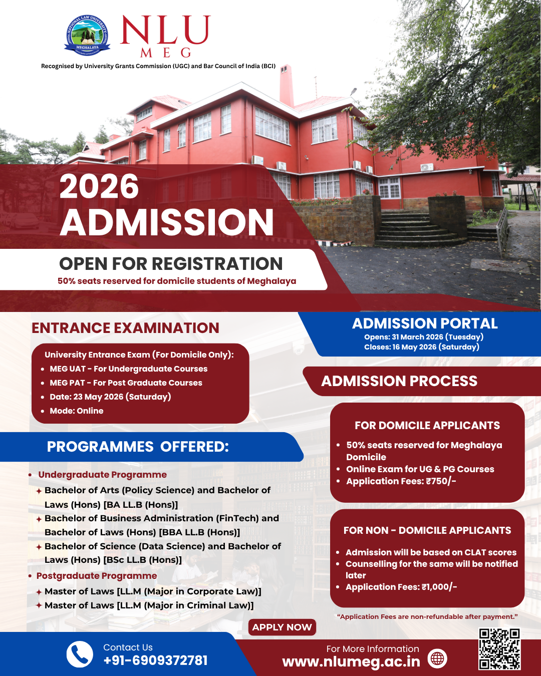 Situated in the culturally vibrant and scenic state of Meghalaya, NLU Meg serves as a hub for students and scholars who seek to address the unique socio-legal challenges of the North-East region and beyond. The university integrates traditional knowledge systems, contemporary legal practices, and global perspectives to cultivate a holistic understanding of law and governance.